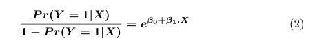 The left hand side of equation (2) is called the ‘odds’ and it can take any value between 0 and infinity. If we take logs on both sides of equation (2), we get,