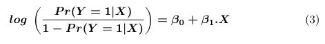 The left hand side of equation (3) is called the ‘log-odds’ or ‘logit’, which has a linear relationship with X (predictor variable).
