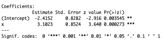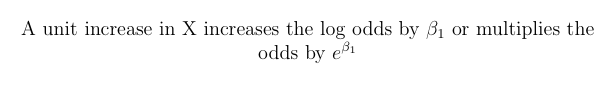 Hence, a unit increase in x increases the log odds by 3.1023 or multiplies the odds by 22.